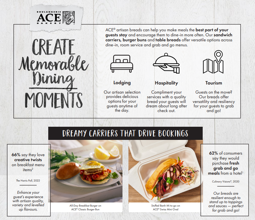 Craft Memorable Moments - ACE Bakery® burger buns, sandwich carriers, and table breads transform your menu into a guest favorite. Ideal for dine-in, room service, and grab-and-go menus.
